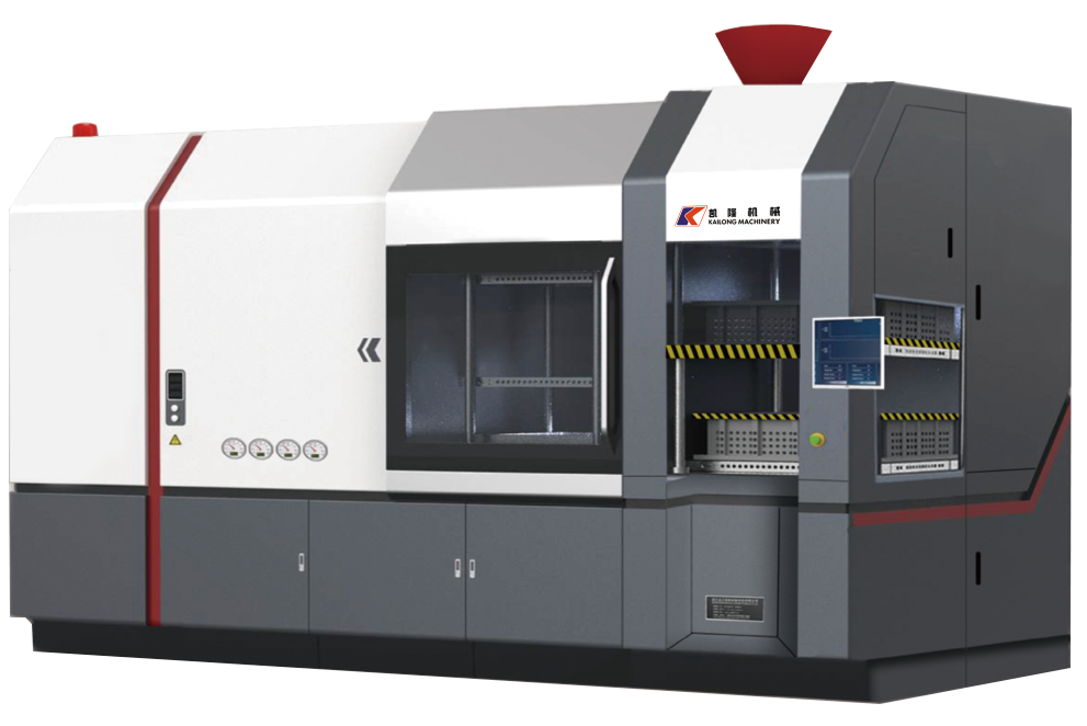 KSF水平脱箱挤压自动造型线采用射砂加砂方式,水平分型,砂型加套箱、压铁的浇注方式,此造型线方便下芯、操作简单,自动化程度高,广泛应用于小型铸件的大批量生产。全线由造型主机、砂型输送线、套箱压铁取放装置、推型装置、同步冷却皮带、浇注系统等组成。